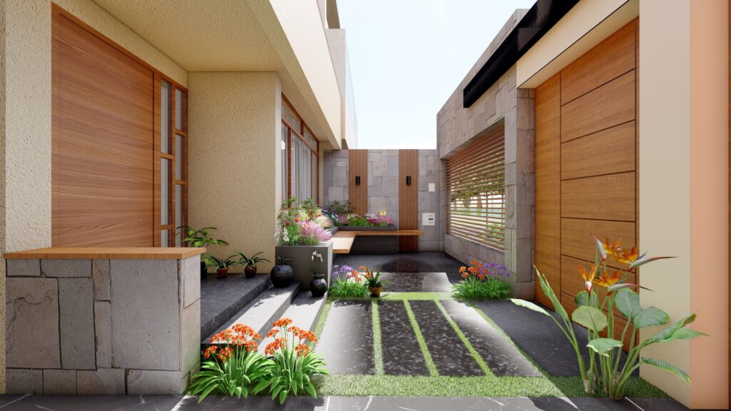 Un patio antes desaprovechado se convierte en la entrada ideal para recibir. Un espacio renovado que da la primera impresión del hogar, pensado para que los invitados disfruten desde el momento en que cruzan la puerta y la familia tenga un lugar cálido y abierto para compartir.